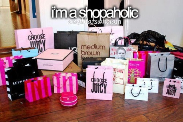 Deze foto spreekt voor zich, ik ben een echte shopaholic! Ookal winkel ik op mijn zakgeld omdat ik geen baan heb, ik ben er dol op! Ik hou ervan om alleen al door leuke winkels heen te lopen zonder iets te kopen (als ik blut ben) en gevoel is gewoon geweldig. De geur van nieuwe spullen vind ik ook altijd heerlijk, kortom, i love shopping!